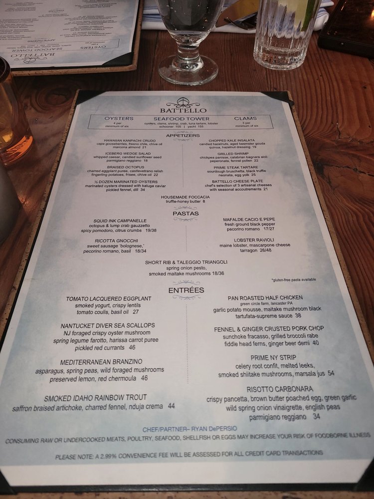 Battello, a lounge offering Italian and seafood cuisine, stands out for its stunning views of Jersey City and New York. With a diverse menu, Battello caters to various dietary preferences, offering vegan and limited vegetarian options. The restaurant provides a trendy, dressy ambiance, perfect for groups, special occasions, and date nights. Customers praise Battello for its excellent service, creative cocktails, and spacious seating areas. The food receives mixed reviews, with highlights including the tuna tartare, octopus, Gnocchi, and crusted pork chop. Desserts and seasonal items add variety to the menu. While some dishes like the cappelletti and scallop risotto impress, others fall short in taste and presentation. Overall, Battello is a go-to spot for its ambiance, views, and special occasions, though the food quality may vary.